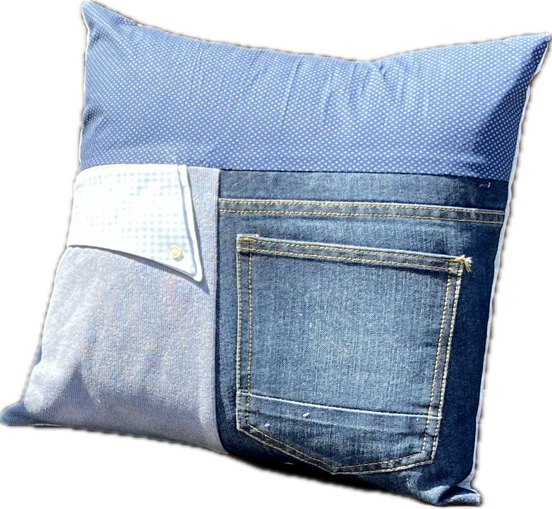 Our designer cushion is ideal for incorporating different features, or capturing the ethos and character of a lost loved one. It could be taking snippets from various pieces of clothing or adding their favourite phrase or adding a hobby...