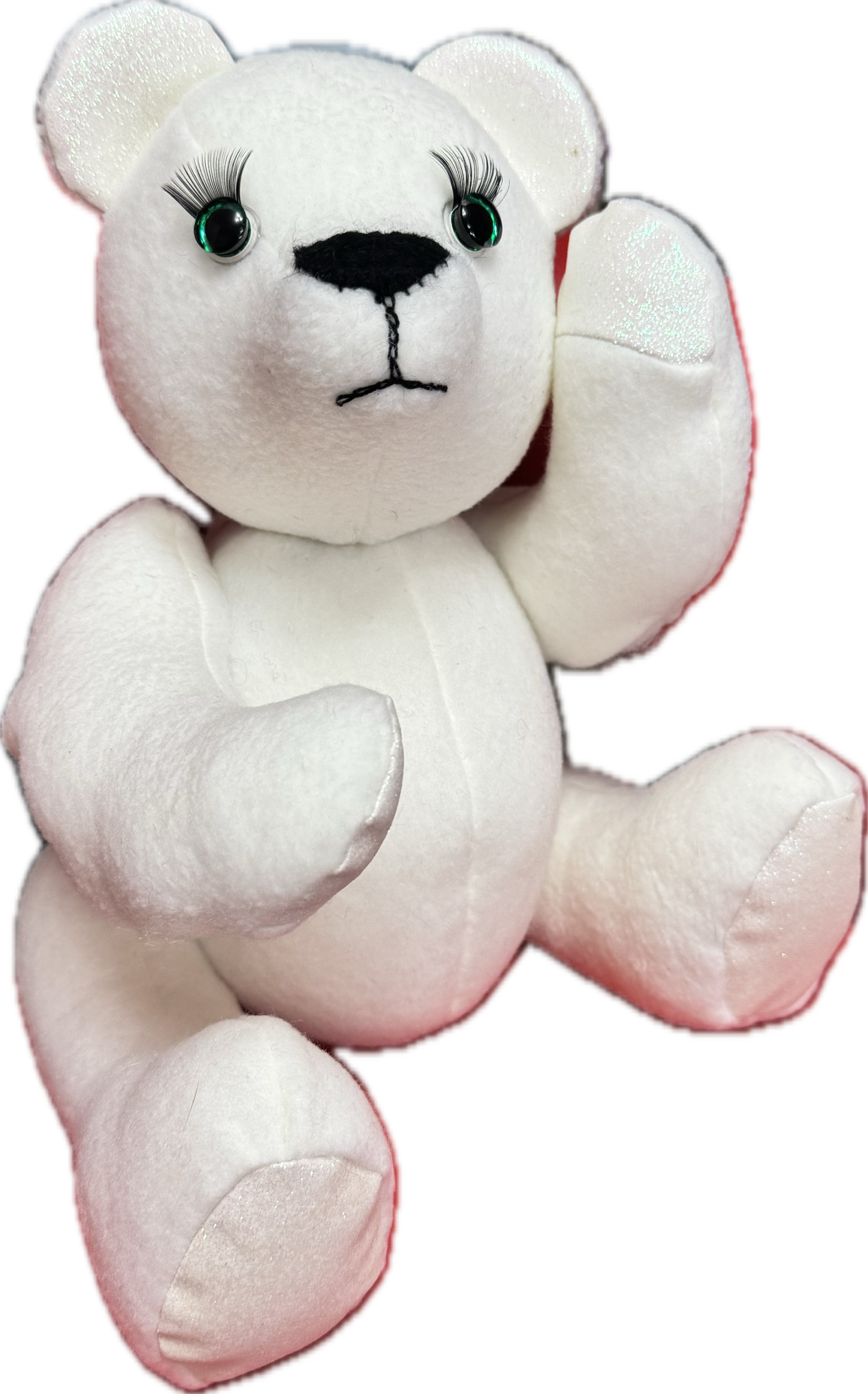 My new pattern for 2026, Aurora, is the smaller version of Lincoln, and is a fully jointed bear, standing 14" tall and 10" when seated. She's just waiting to be loved 🥰