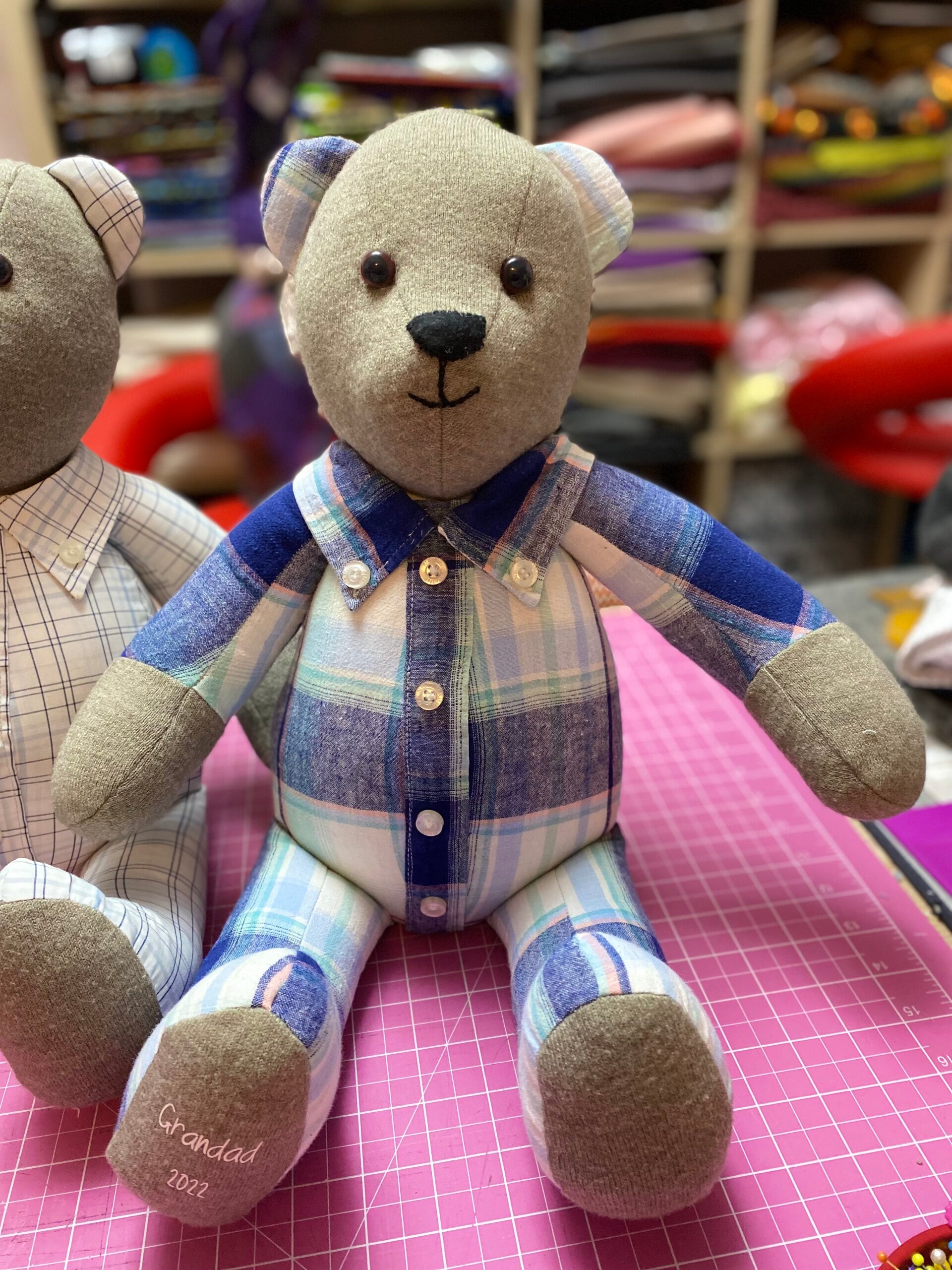 some of these bears are shown with optional extras such as personalisation, photograph or collar and buttons.